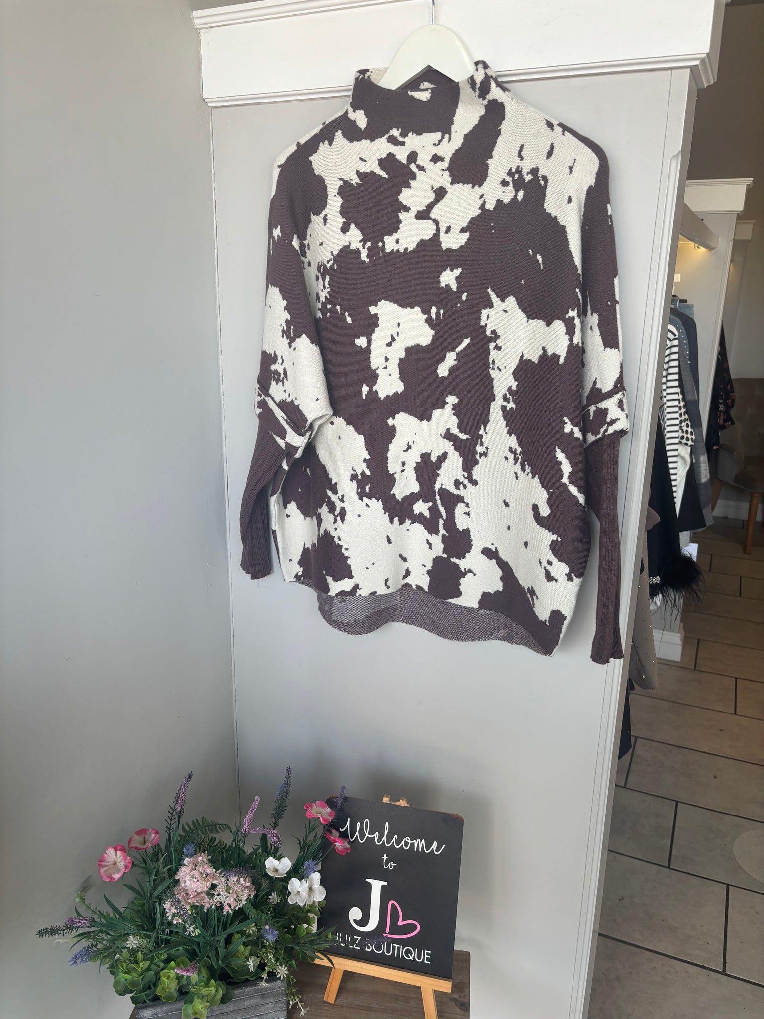 Cow Print High Neck Jumper