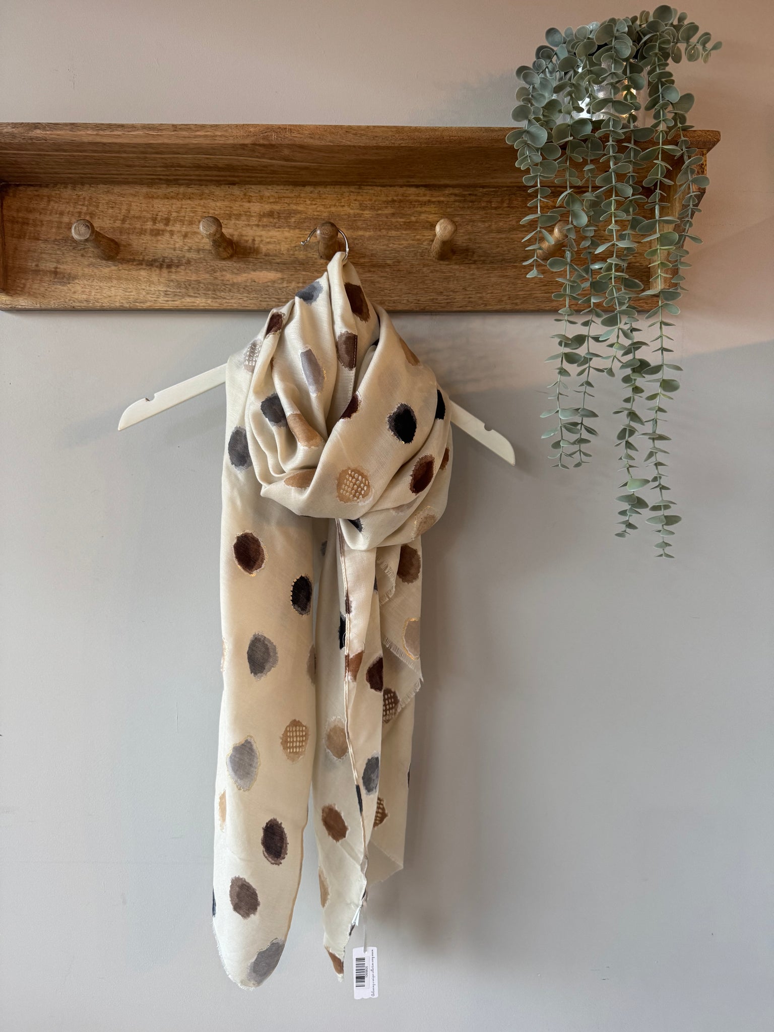 Soft lightweight neutral dotty scarf.