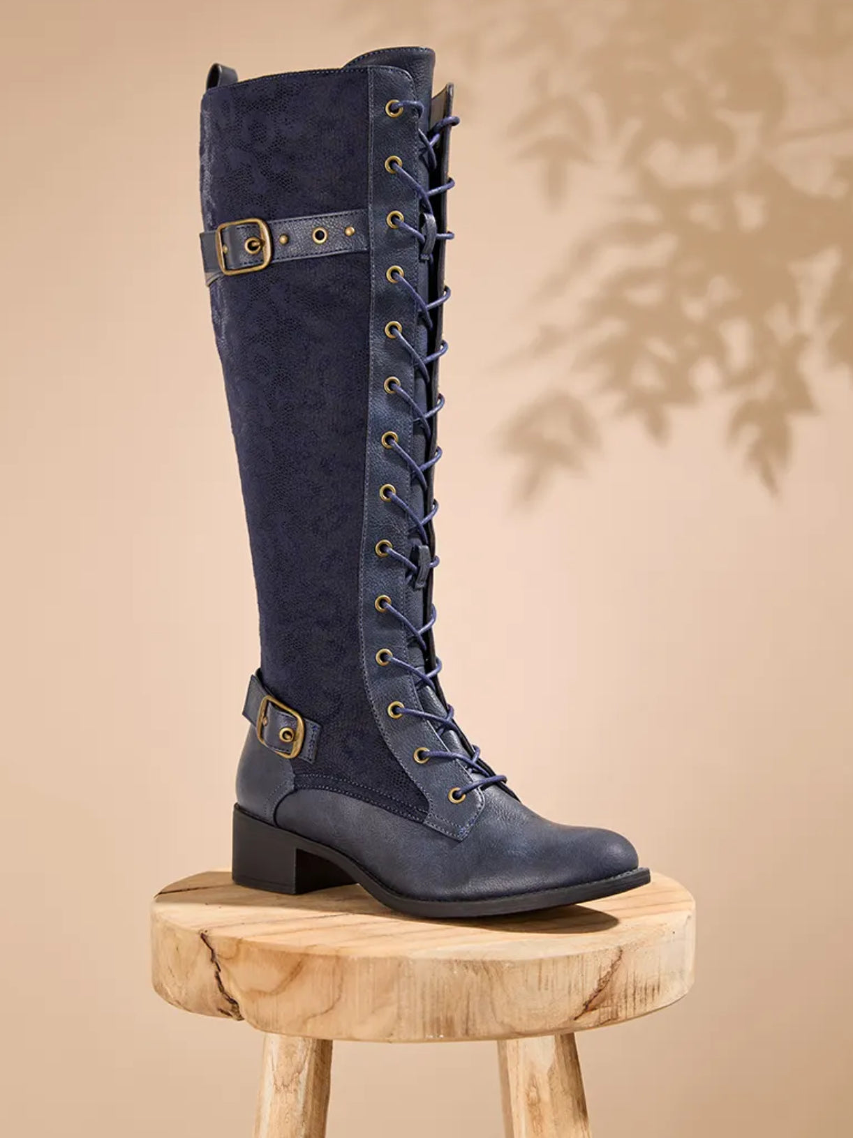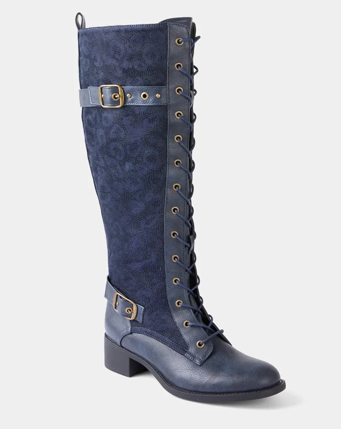 These navy riding boots will bring something different to your shoe collection. A classic style full of Joe Browns flair, we kept the laces and buckle straps but added unique leopard print panels. Come rain or shine, they'll bring sass and class to all your seasonal outfits.