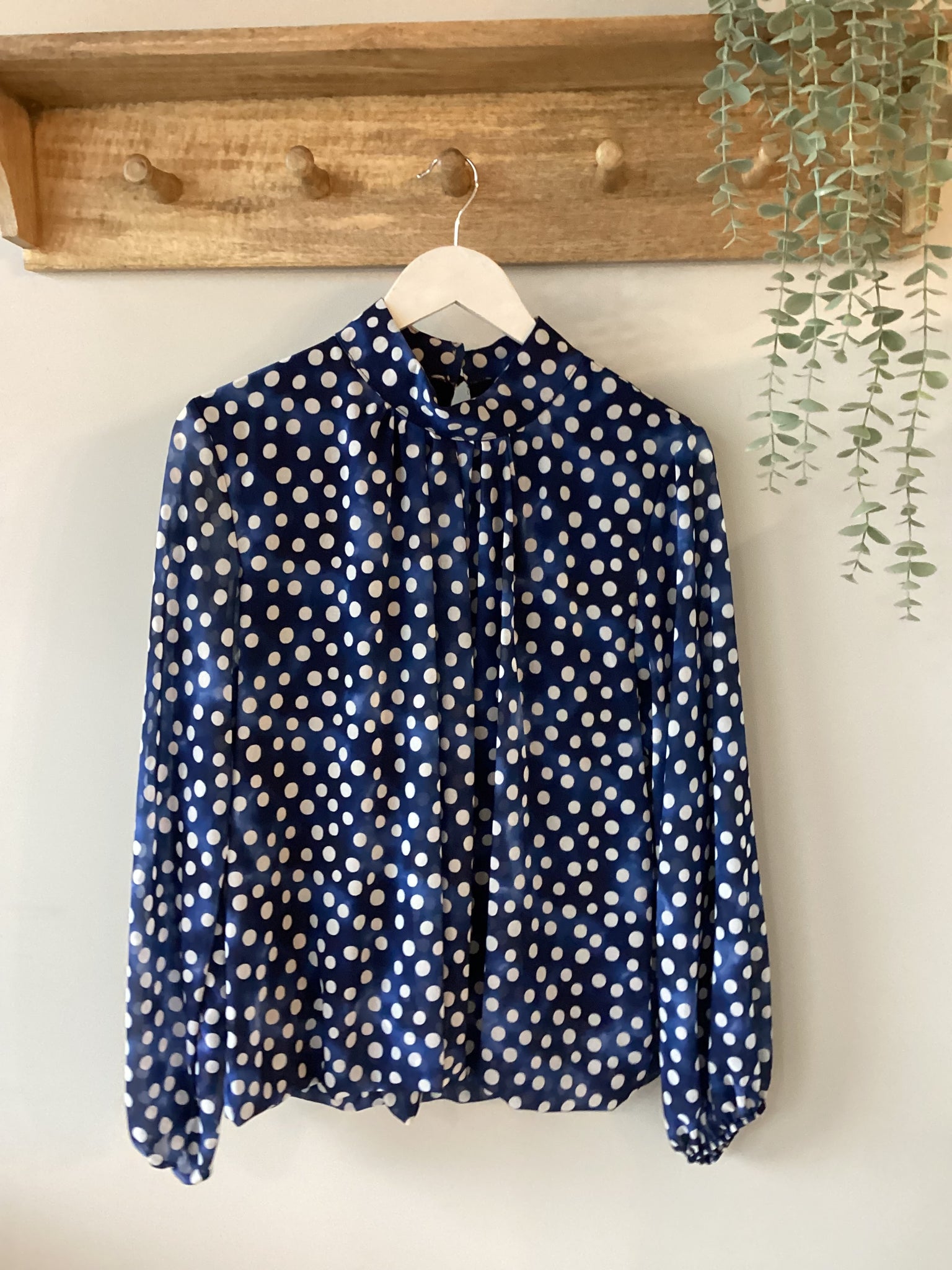 High Neck Polka Dot Chiffon Blouse
