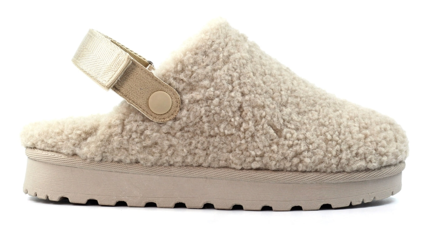 Fun, functional, and fluffy - Naples delivers comfort with character. A supportive thick sole and supper soft upper make it a standout in any slipper collection. The adjustable strap ensures easy wear.