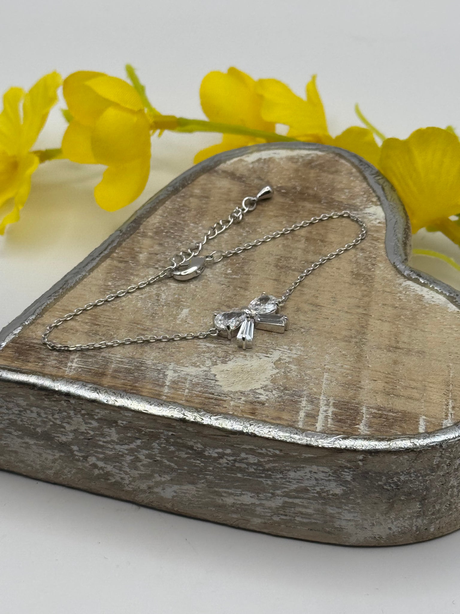 Delicate Diamante bow bracelet available in silver or gold. These would make the perfect gift