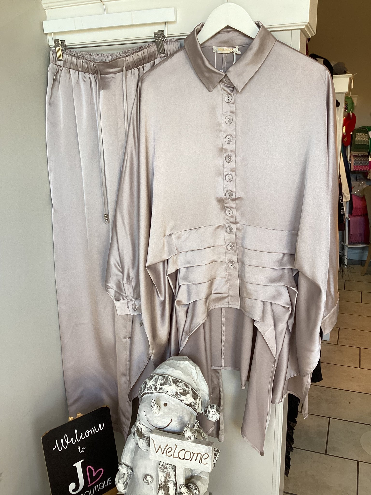 Malissa J Satin Pleated Blouse & Satin Trouser Set