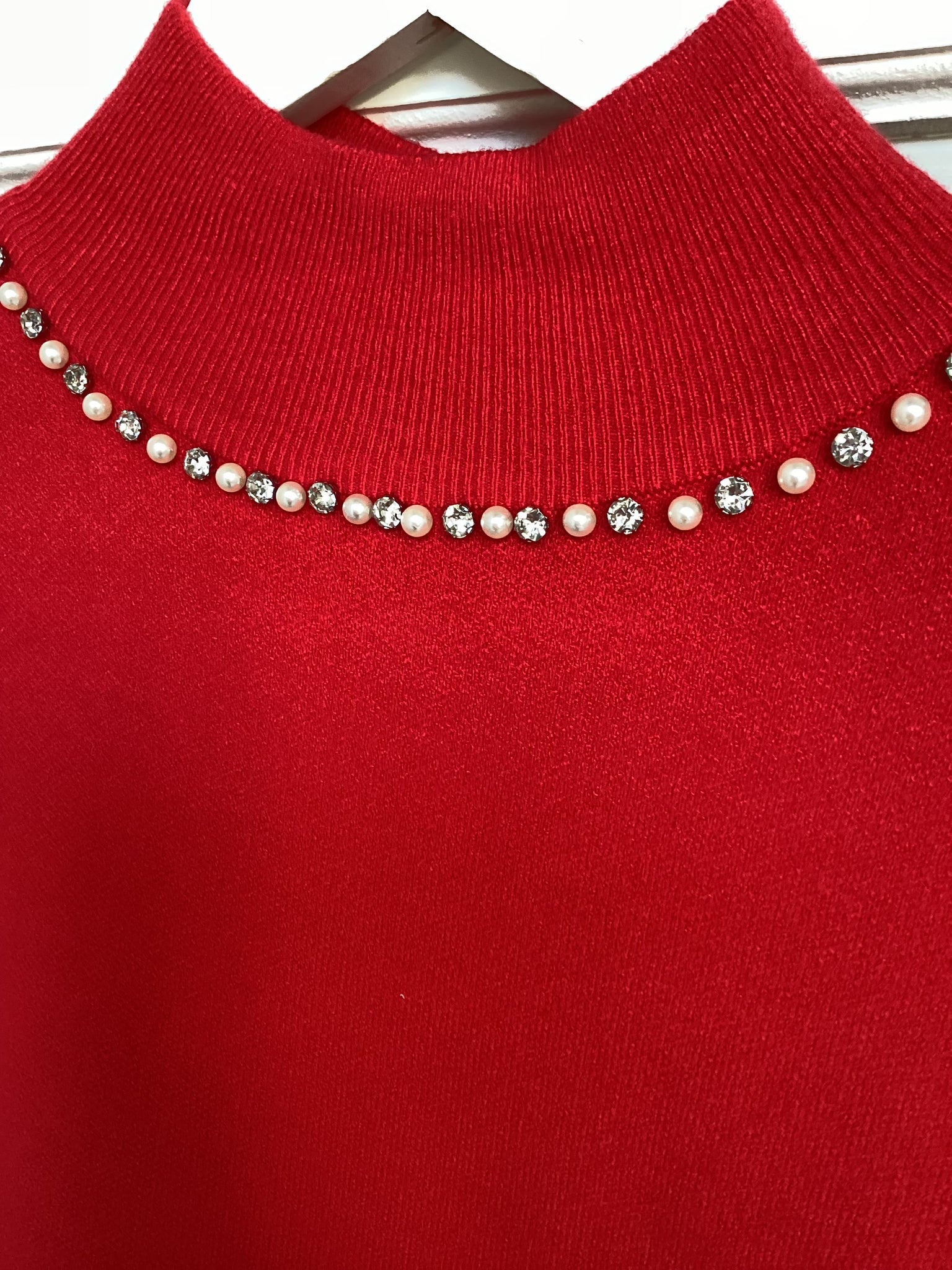 Gorgeous Crew neck soft sleeved pearl neck jumper. Ideal for the festive season.